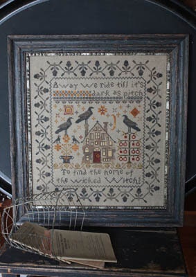Model stitched on 30 Ct. Mink linen with Gentle Art Sampler threads (or DMC 3045, 3787, 3021, 869, 3781, 3857, 3799, 3031, 869, 3826, 407, 840).